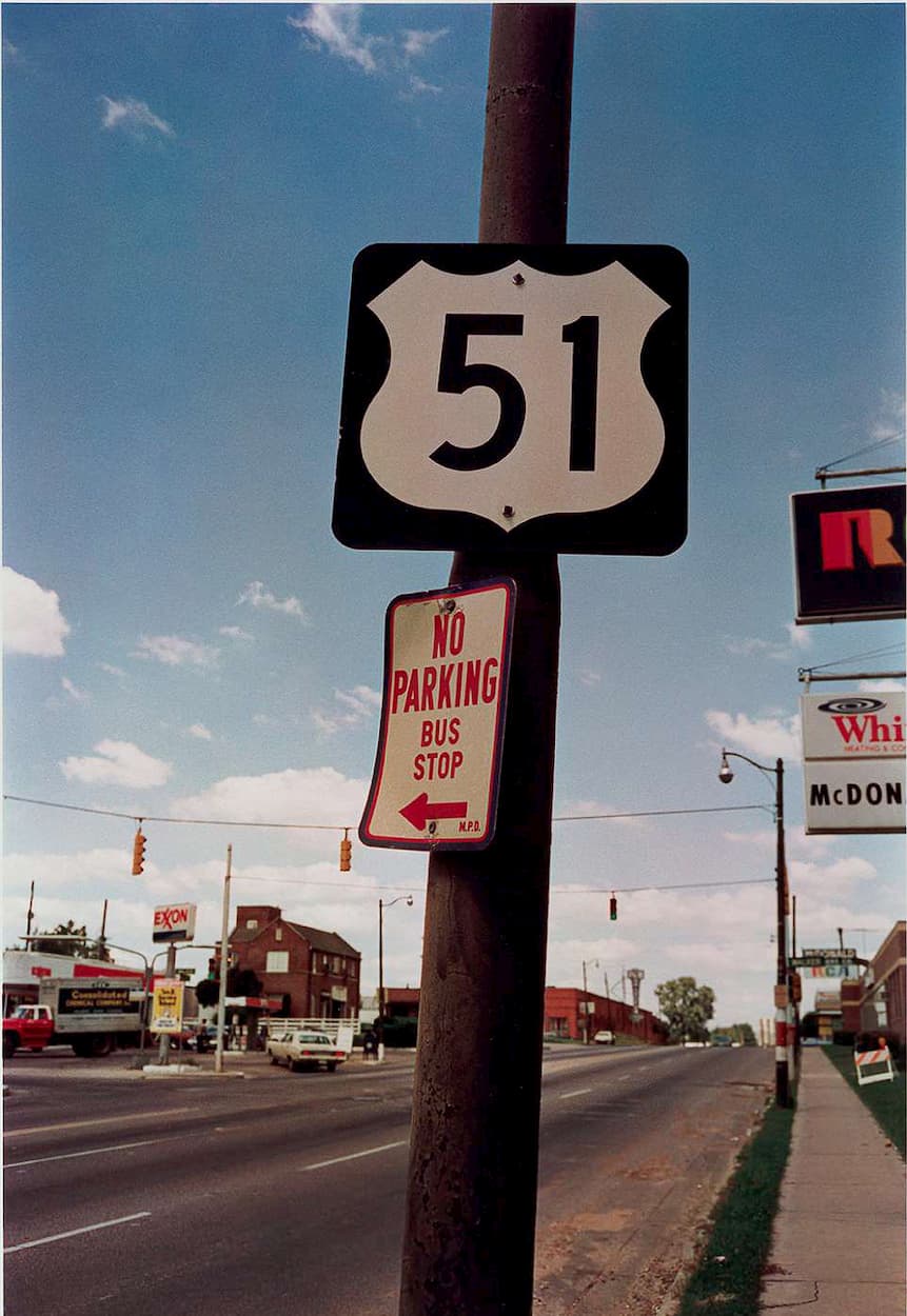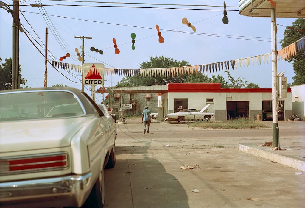 Au volant de sa Buick, Eggleston ne s’arrête que pour l’essence et plus de cigarettes.