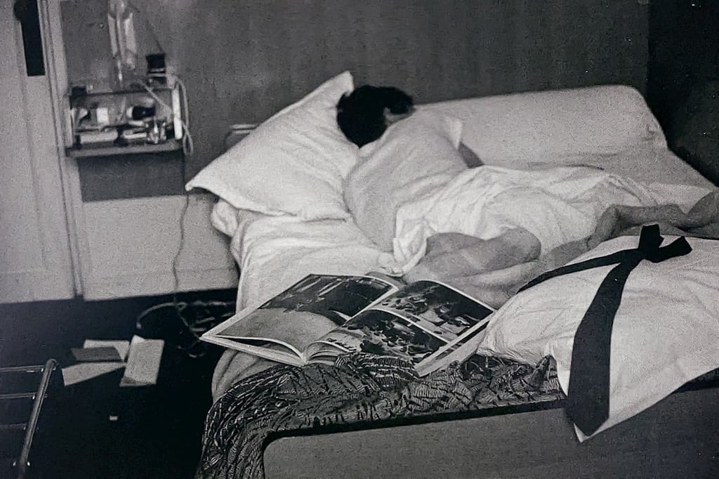 Lors de ce séjour, il ne prend pas la moindre photo. Le cliché du jeune photographe, endormi à côté du livre Les Européens de Cartier-Bresson (1955), est un clin d’oeil à cette crise artistique :