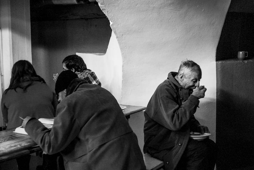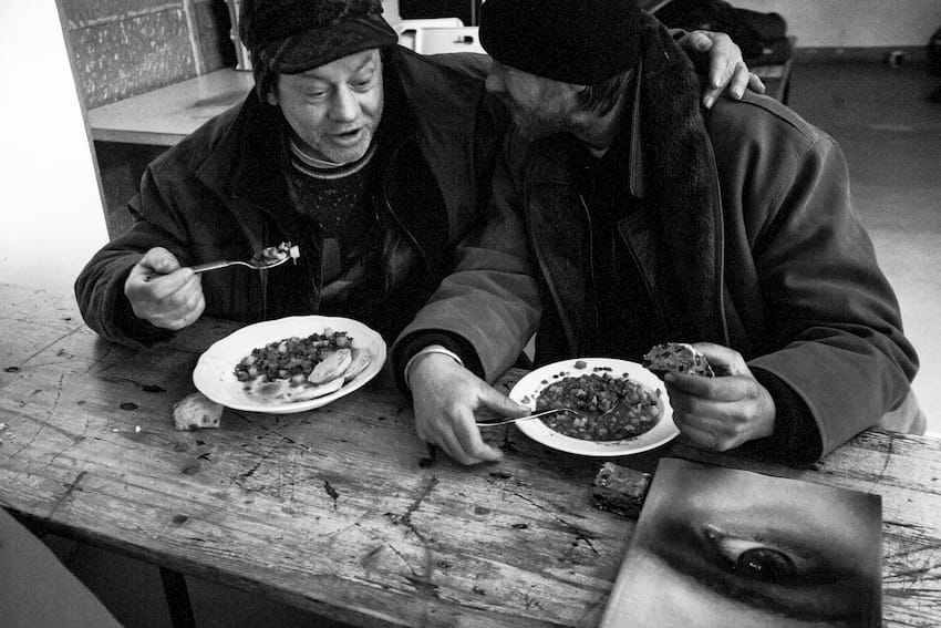 Chaque nuit, environ deux cents personnes se présentent pour obtenir de la nourriture et un abri.
