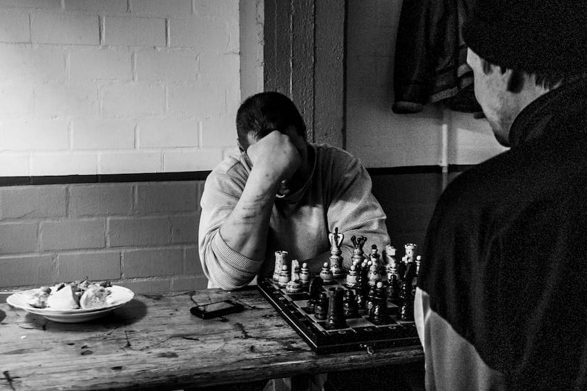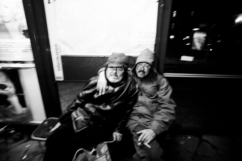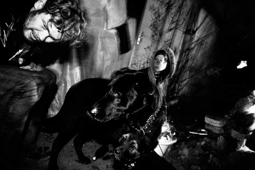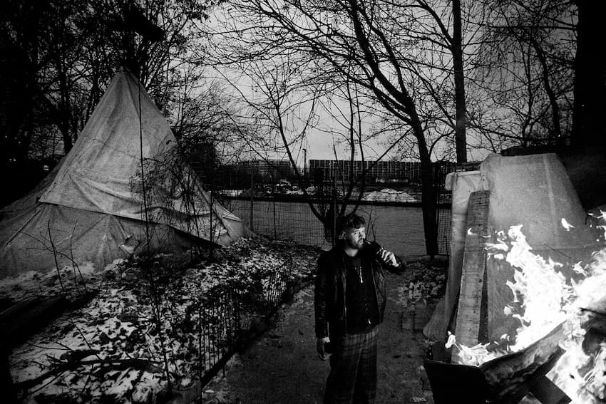 Pour se réchauffer, ils font des petits feux à l’intérieur. Parfois, il y a tellement de fumée qu’il est difficile de respirer. Certains fument de l’herbe. La plupart boit de l’alcool. Tous vivent leur vie sans créer de problèmes.