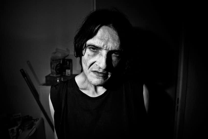 Une femme est addicte à l’héroïne. Je fais son portrait dans l’entrée de l’appartement.