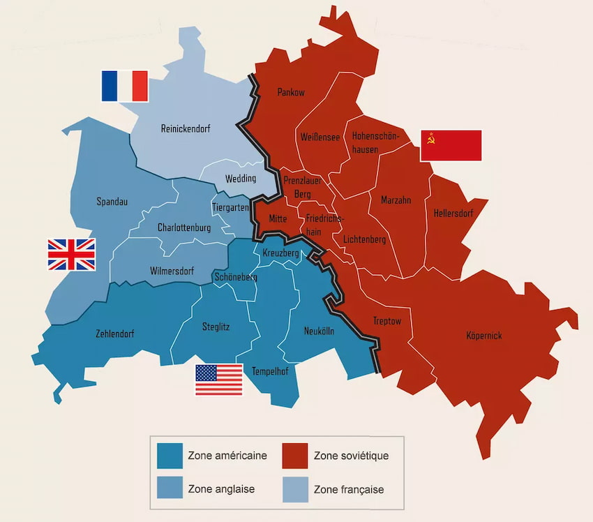 Après la seconde guerre mondiale, la ville est divisée en deux : l’Ouest contrôlé par les Américains, les Anglais et les Français ; l’Est par les Soviétiques.