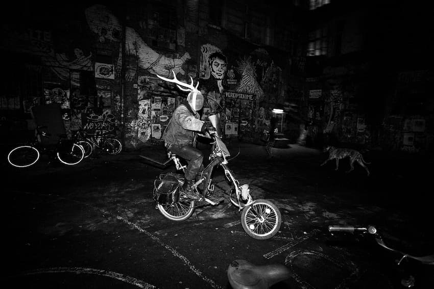 Sur la photo c’est le gars qui m’a autorisé à entrer dans Köpi. L’un des plus anciens du squat. Pour vivre, il deale de la weed. C’est un livreur de weed, ce mec. Il charge l’arrière de son vélo avec un gros casier de weed et il part se balader dans le quartier. Il s’arrête, vend sa dope aux gens et repart.
