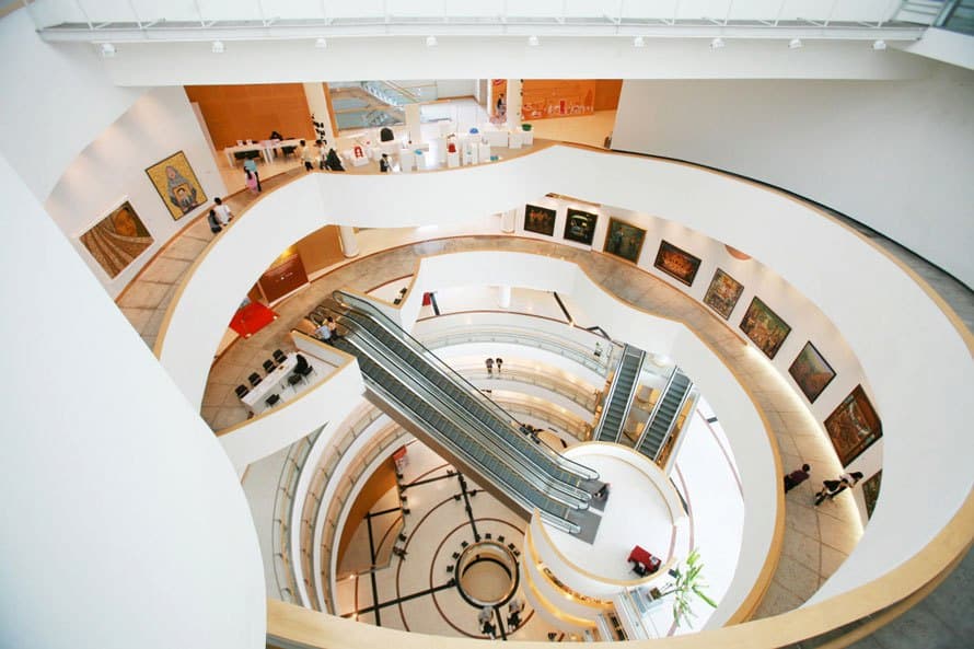 Le bâtiment répond à l’exigence de modernité qu’impose ce type de lieu. Il est autant un présentoir pour oeuvres d’art qu’une oeuvre d’art en soi.