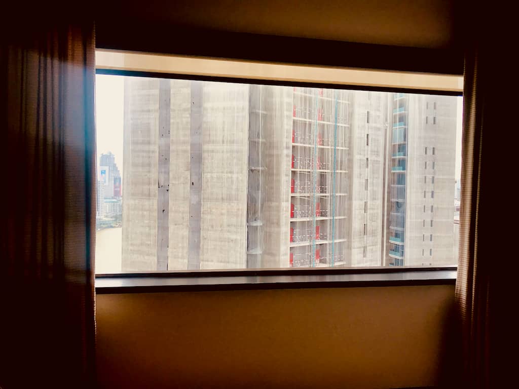 Victor accède à son hôtel. La chambre offre une vue dévorée par une tour pas tout à fait finie.
